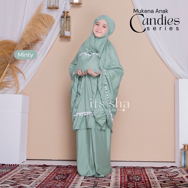 Harga ITS SHA ll MUKENA ANAK TERBARU RAYON PREMIUM RENDA POMPOM (UMUR 2th-13th) CANDIES SERIES