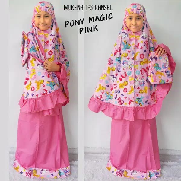 MUKENA ANAK KARAKTER UNICORN PINK TAS RANSEL BAHAN ADEM