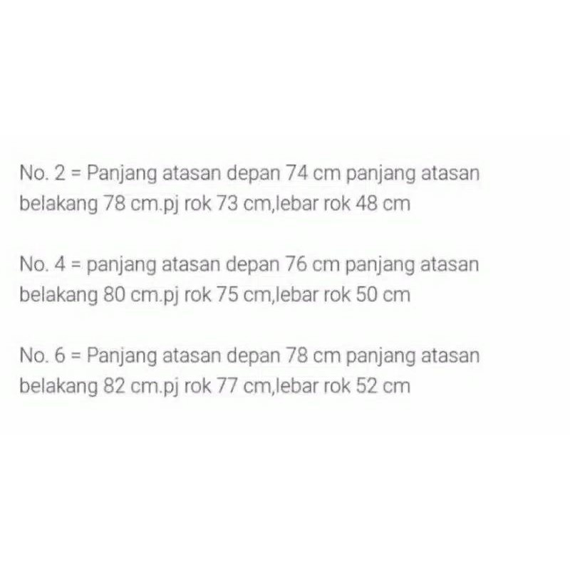 Produk ini memiliki 3 Variasi Ukuran yaitu : 2T (1-3thn),4T (4-5thn),6T (6-7th),