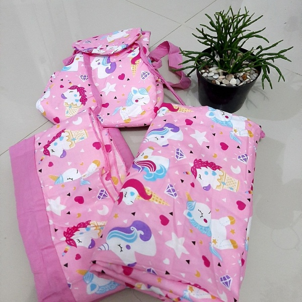 Harga Mukena Anak Kecil SD Katun Karakter Unicorn Pink Size XL Usia 9-10 Tahun Kuda Poni Tas Ransel