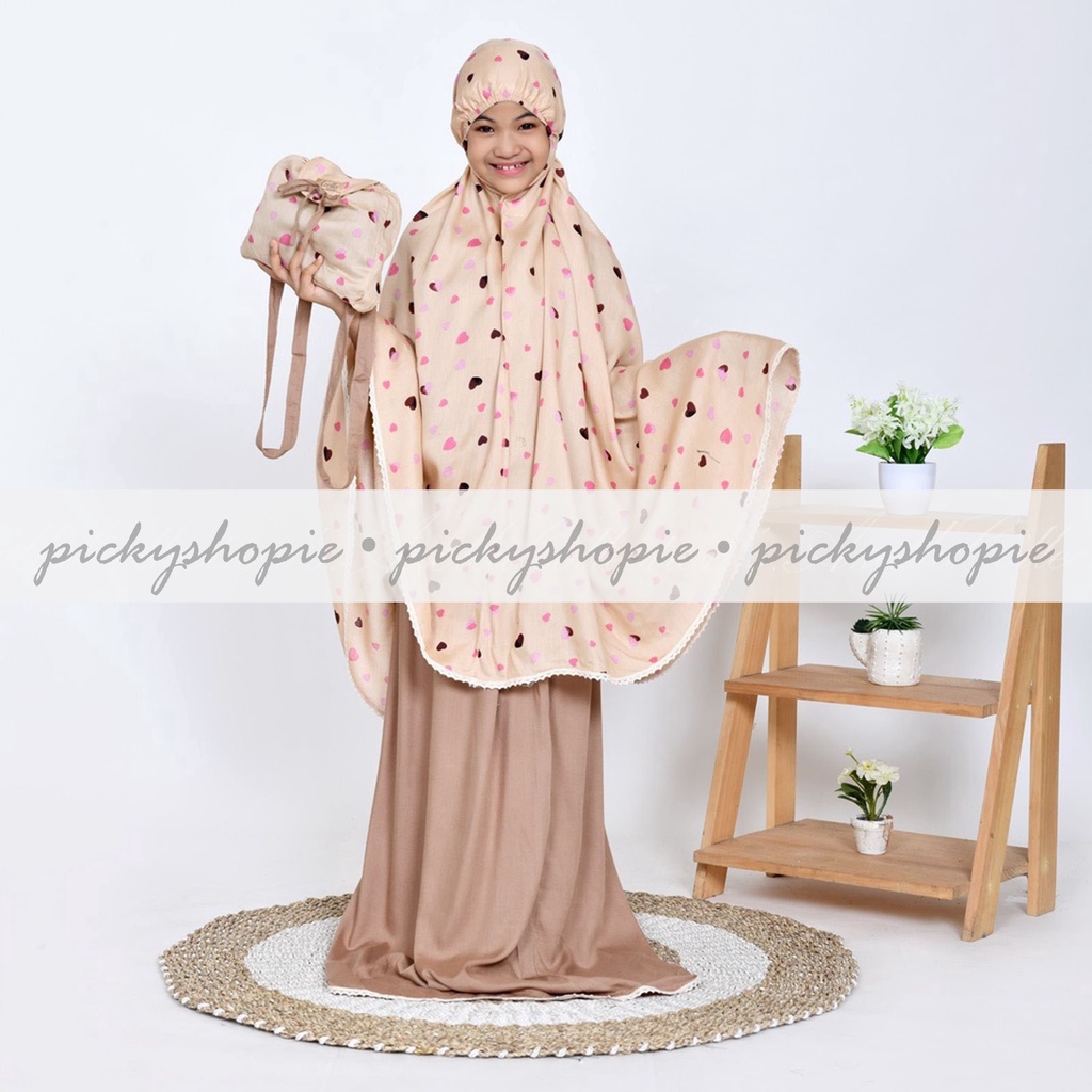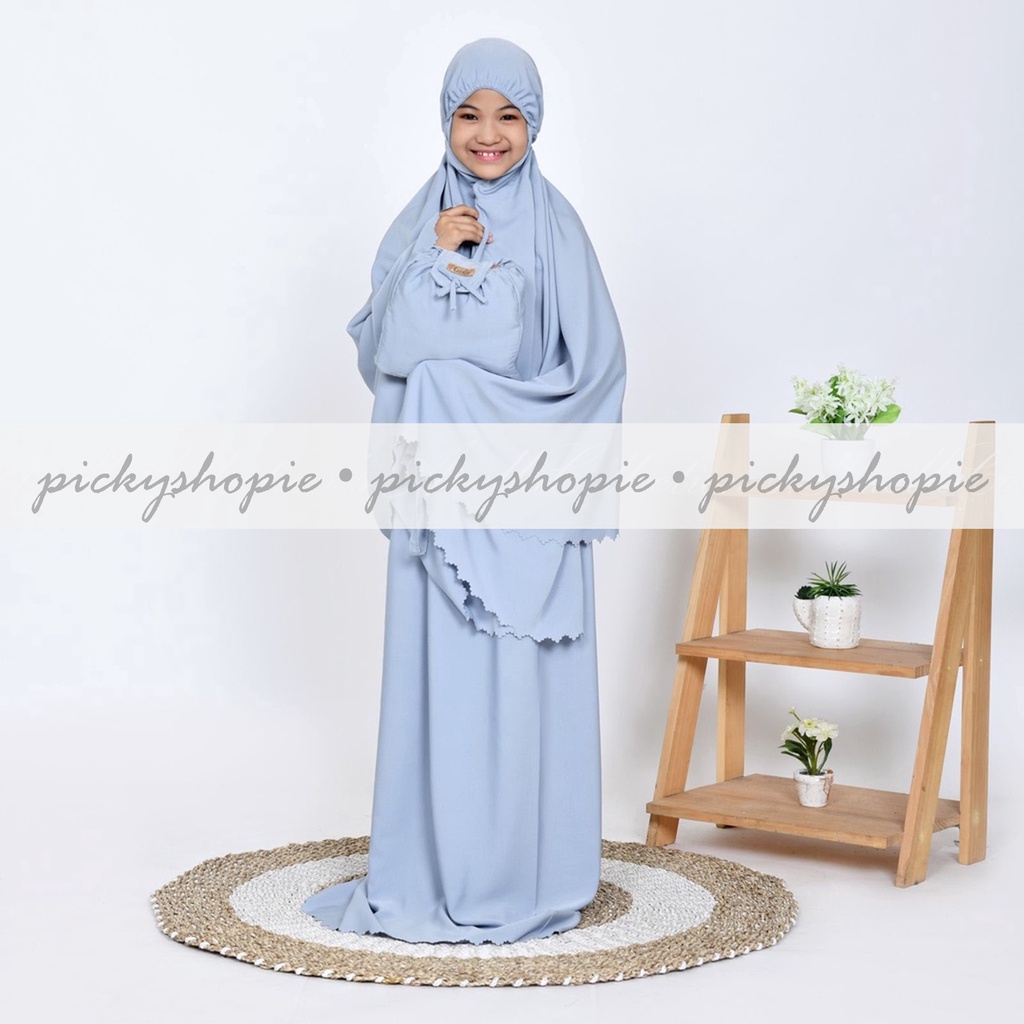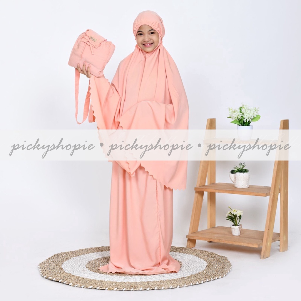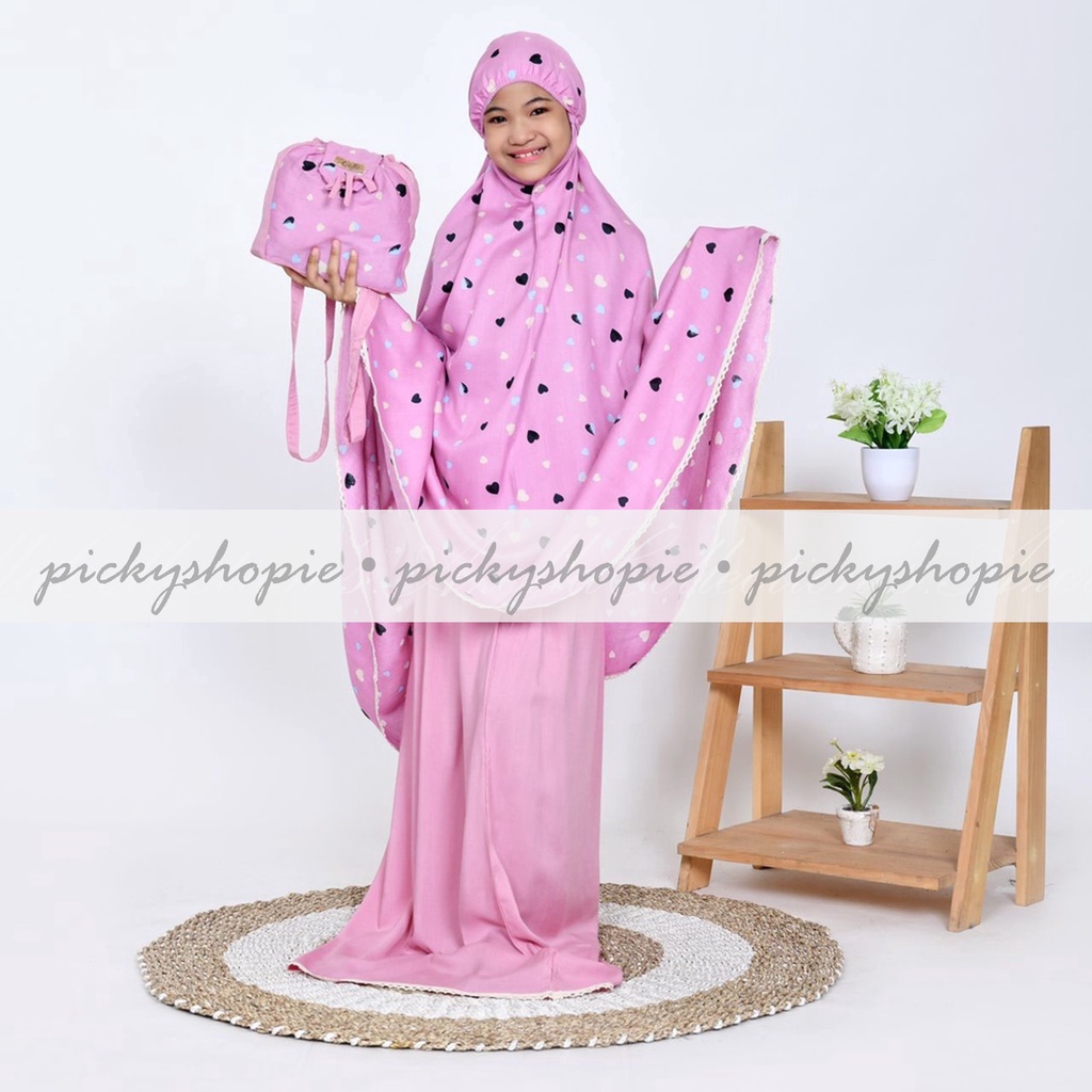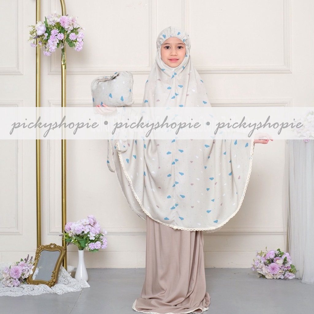 Harga Mukena Anak Perempuan Balita Tanggung Cutting Lasercut Bahan Baby Silk Dilengkapi Tas