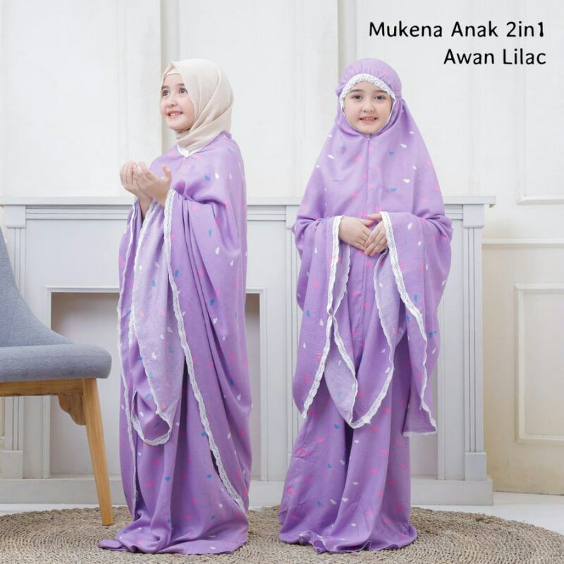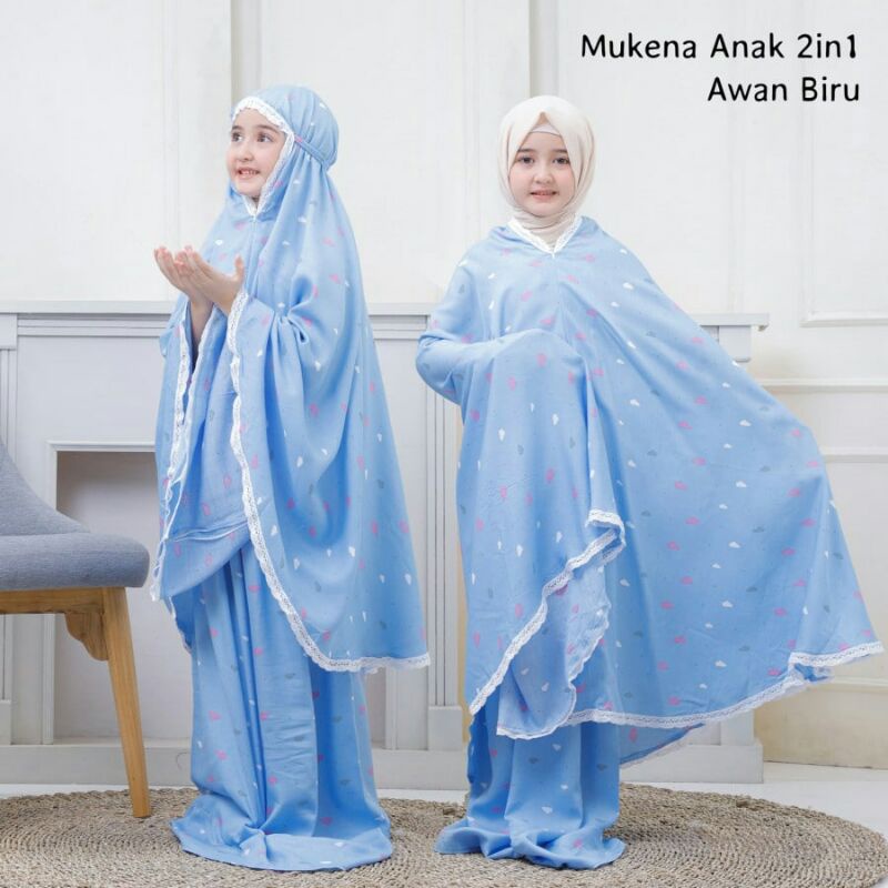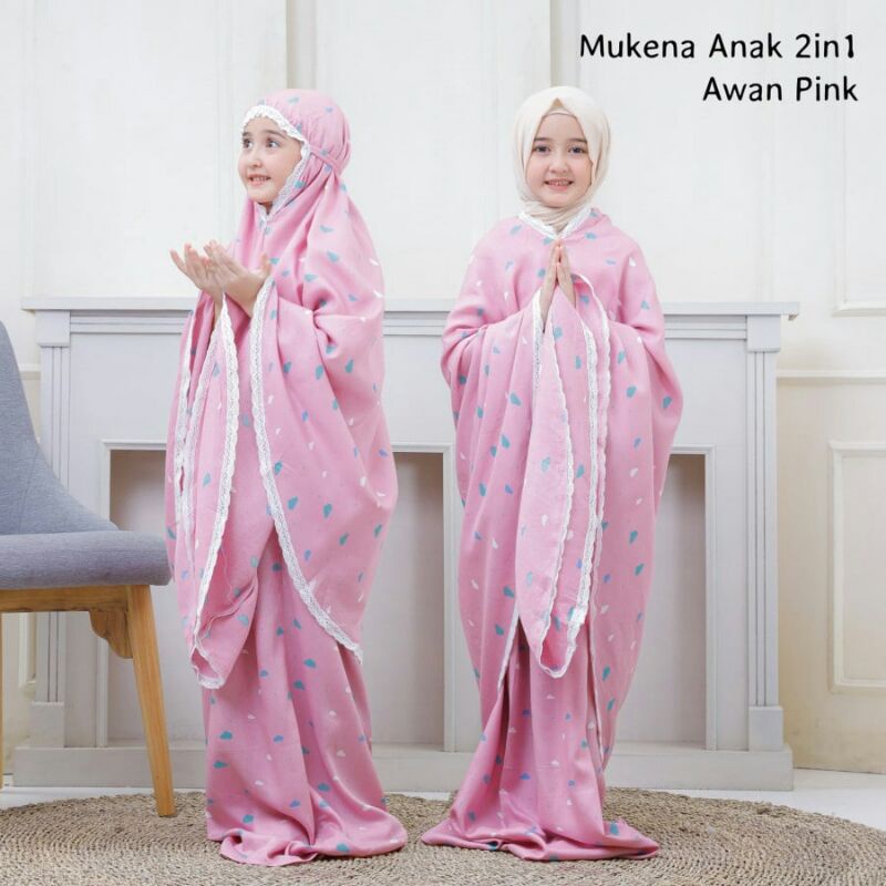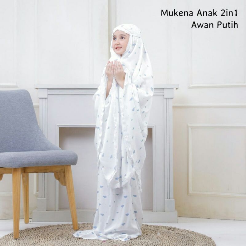 Harga Mukena Anak Tanggung Rayon Traveling Motif Awan 2in1 BISA PONCO!