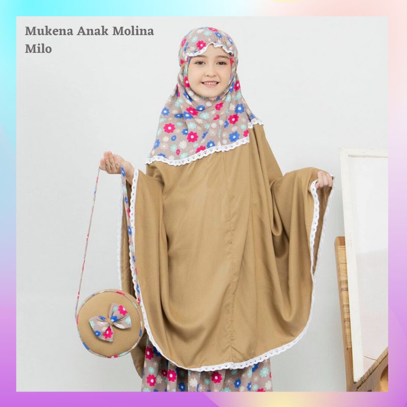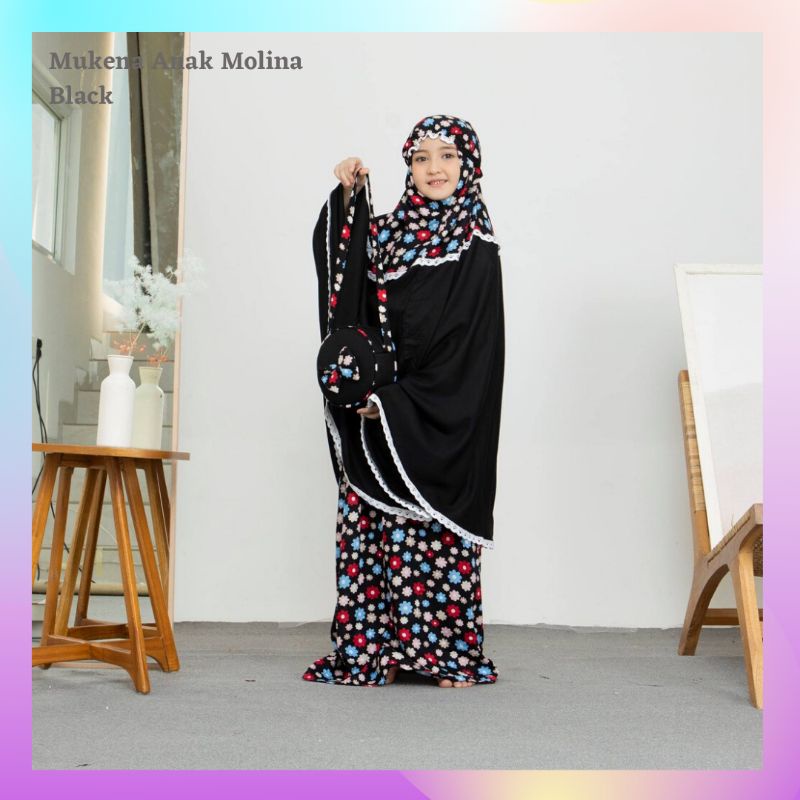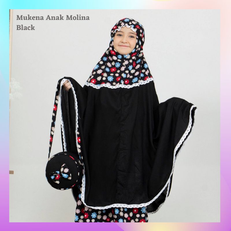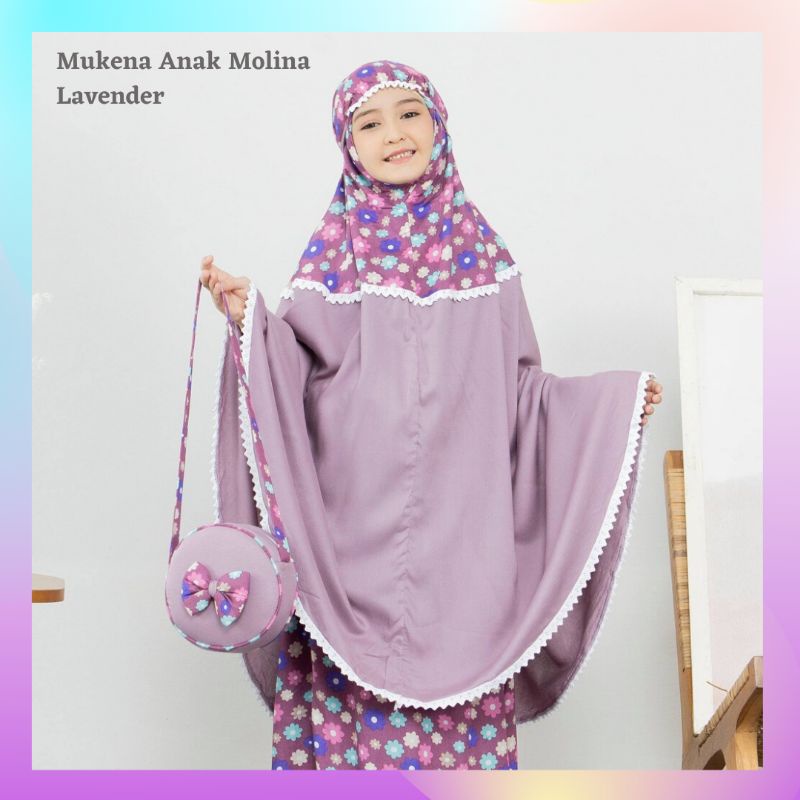 Harga Mukena Anak usia 7 8 9 10 11 tahun Molina moli Rayon Premium / Mukenah anak perempuan Terbaru warna Lilac ungu hitam / mukena anak lucu cantik / mukena anak model terbaru