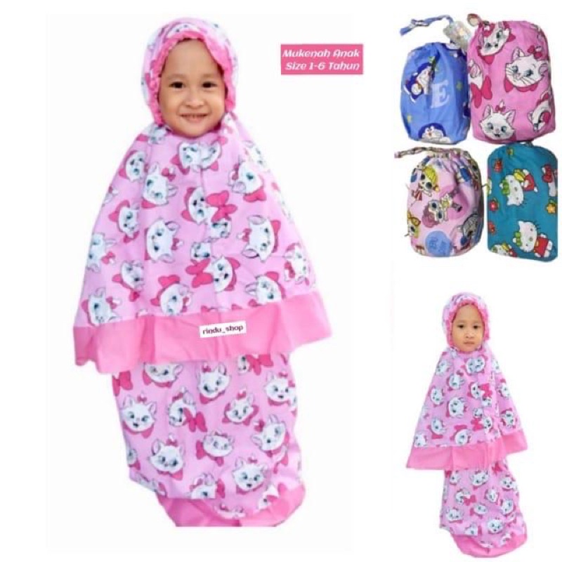 Mukena anak 3 4 5 tahun bahan Jersey balon lucu murah/mukenah anak karakter lucu murah/rukuh anak umur 5 tahun murah/mukena anak apna kitty