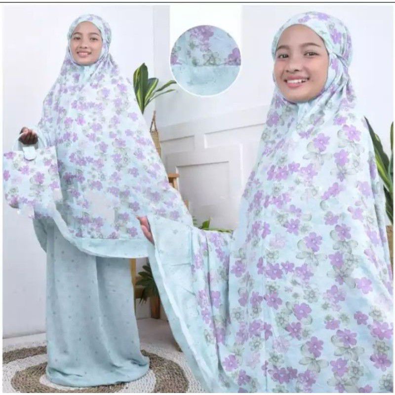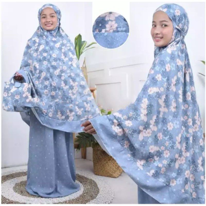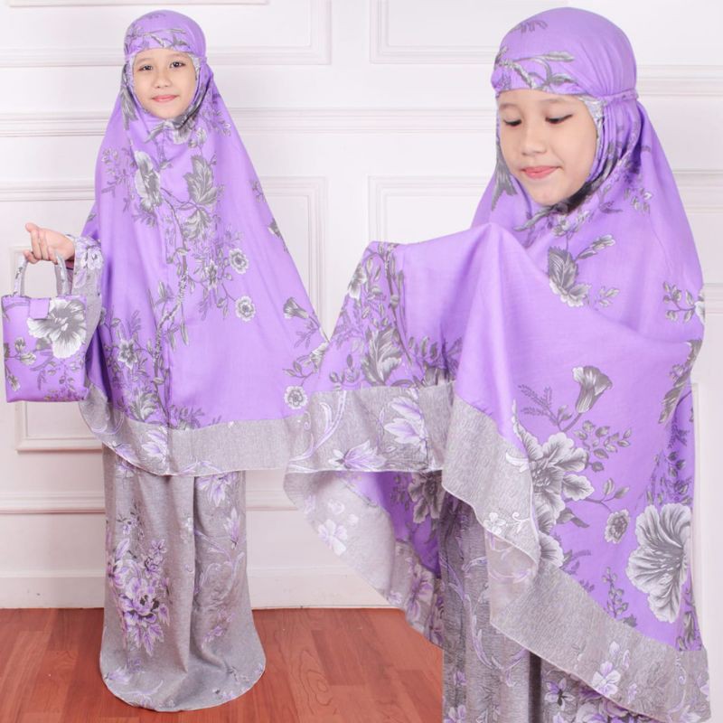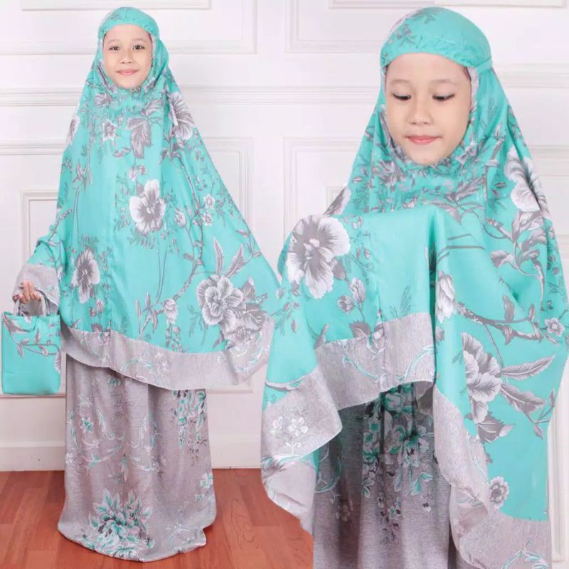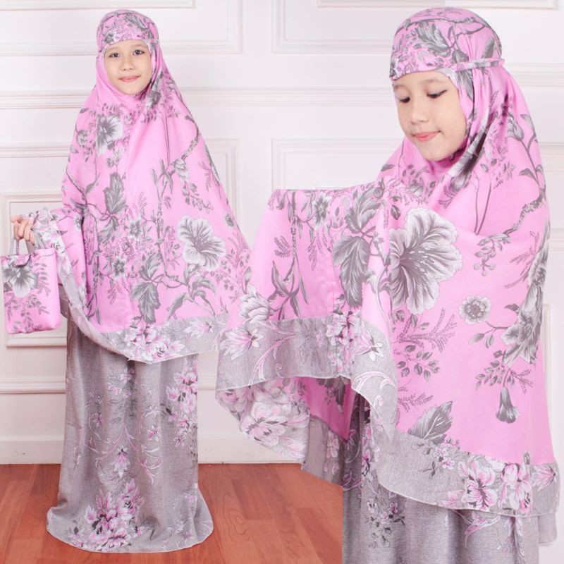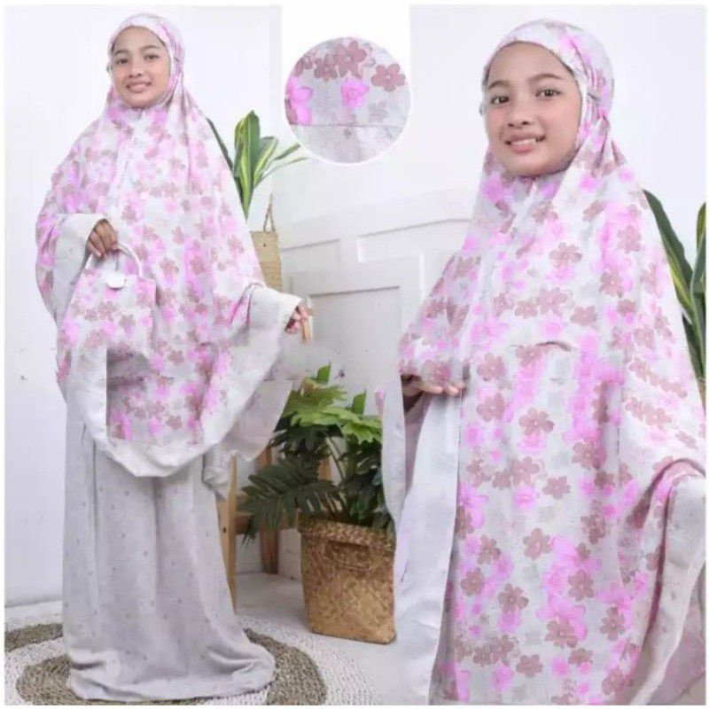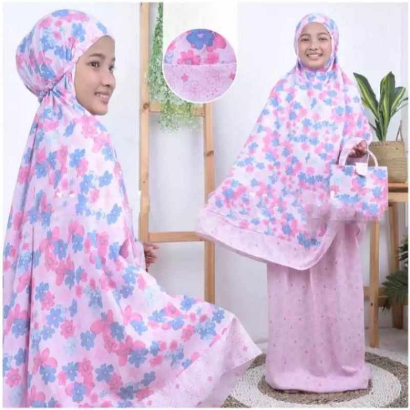 Harga Mukena Anak Tanggung Bahan Rayon Bali Umur 5 - 12 Tahun Motif Bunga Free Tas