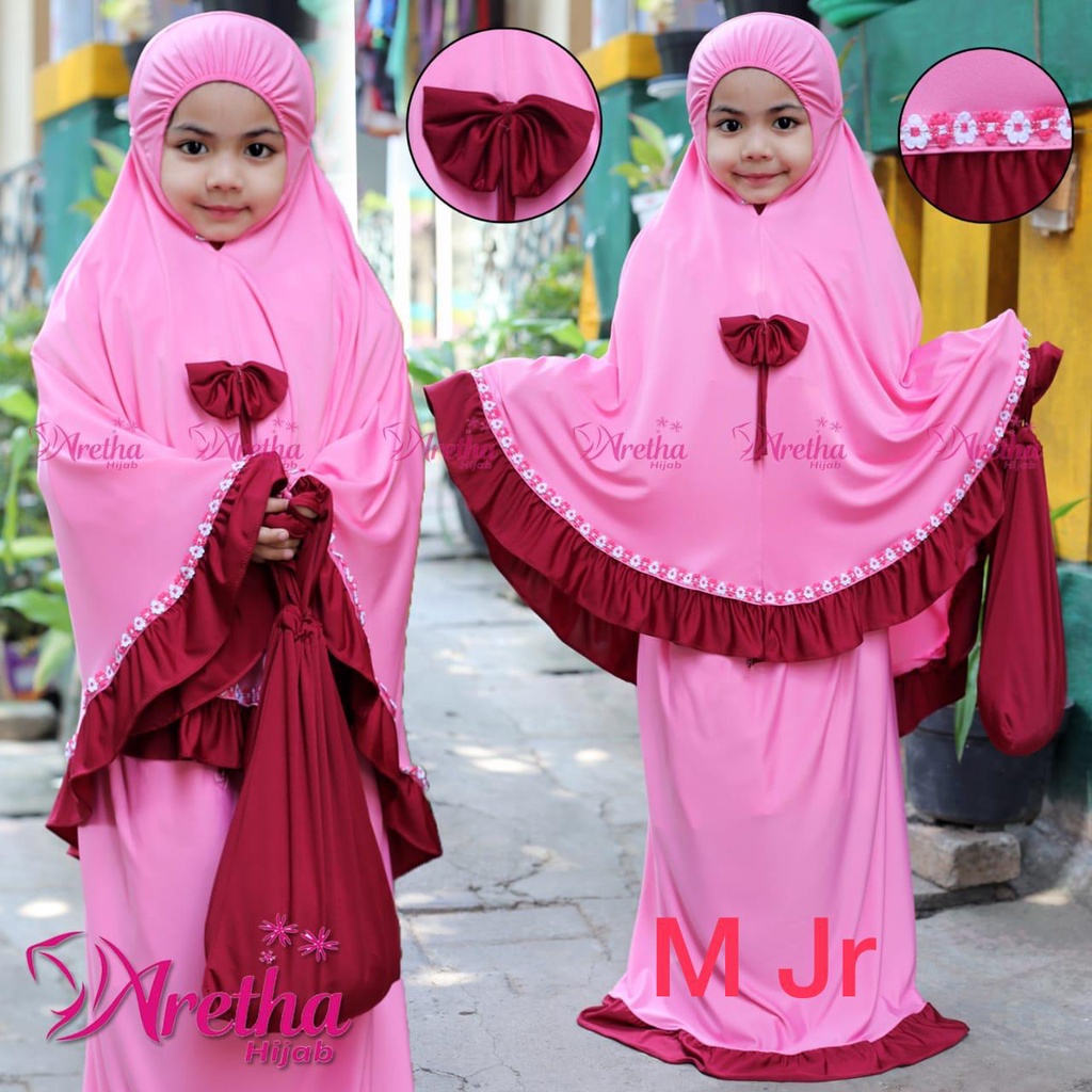 Kelebihan - Kelebihan membeli MUKENA ANAK USIA 4TAHUN M JR VARIASI RENDA BUNGA DAN PITA BAHAN JERSEY di Toko ini