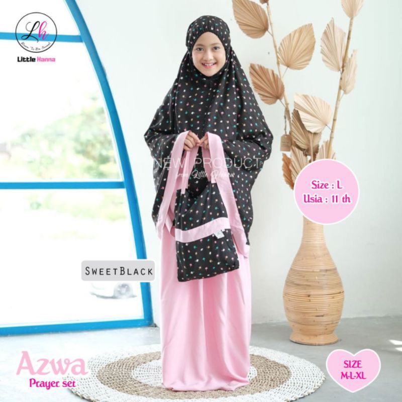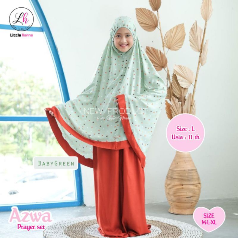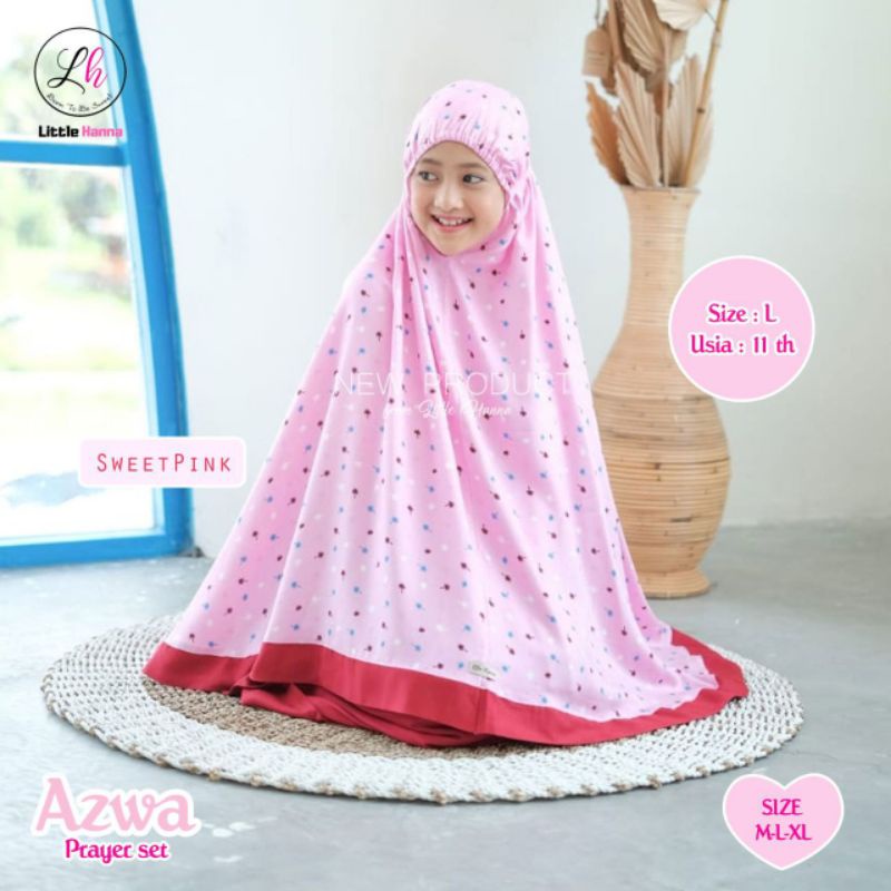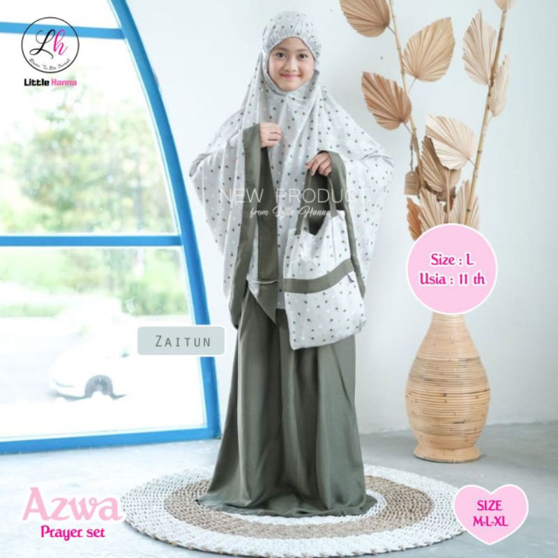 Alasan kenapa harus beli TERBARU!! Azwa prayer set - Mukena anak by Little hanna size junior dan teen 6-15th sekarang